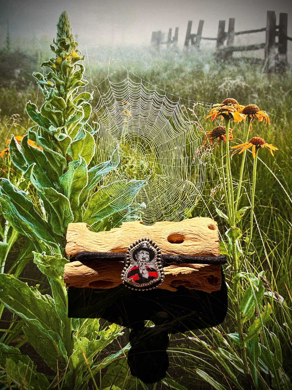 - Sterling silver bezel and decorative bead wire.